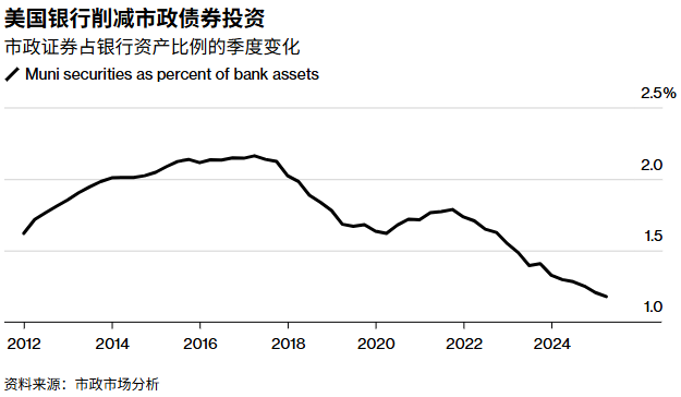 尽管面前估值具备引诱力且新债刊行限制执续扩大,好意思国银行执有的州和方位政府债券比例却降至金融危急以来最低水平。字据市政市集分析公司(MMA)对子邦入款保障公司(FDIC)第二季度数据的分析,银行体系现在共执有约2950亿好意思元市政证券及1900亿好意思元市政径直贷款,市政类金钱占总金钱比重仅1.18%,创下2008年金融危急后的新低。