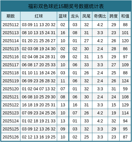 其中龙头号码为02,凤尾号码为25,跨度为23,和值为87。